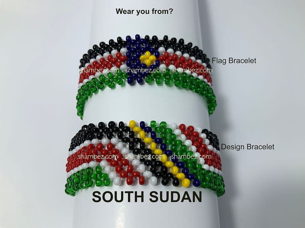 手作りの南スーダンビーズの旗とデザインのブレスレット